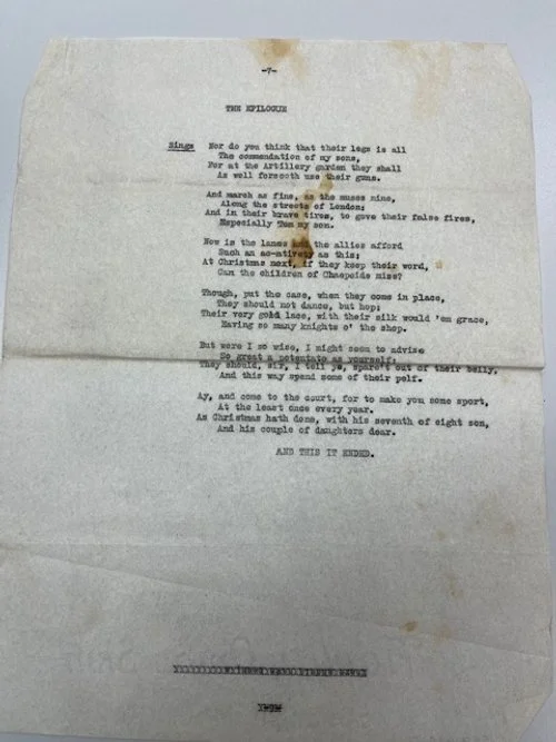Agecroft Hall was rebuilt in Richmond in the late 1920s. In December of 1927, T.C. Williams, Jr. and his wife Bessie moved into the house and celebrated with two nights of glittering housewarming holiday parties. The highlight of the evening was a production by the Little Theatre League of Richmond who staged Ben Jonson’s Christmas Masque at Agecroft Hall in the Williams Library. The masque, originally titled “Christmas, His Masque,” was first performed during the Christmas celebrations at King James I’s court in 1616. In our collection, we have both a transcript of the play and the souvenir booklet given to attendees.