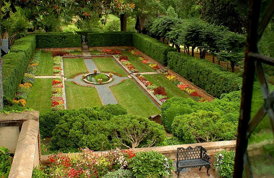 Charles Gillette drew on several of the landscape traditions he studied while in Europe. Therefore, the gardens we have at Agecroft are not designed to represent one particular time period, but rather create the variety that one would see at a grand European estate where the gardens were developed over centuries.