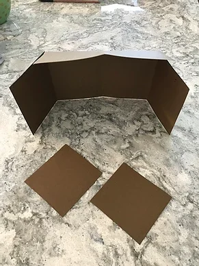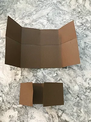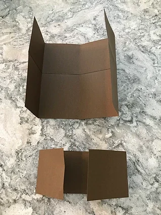 Cut away the top side squares on the larger piece of paper at the creases. Discard squares. Notice that in the photo below the roof is curved over the top of the stall.