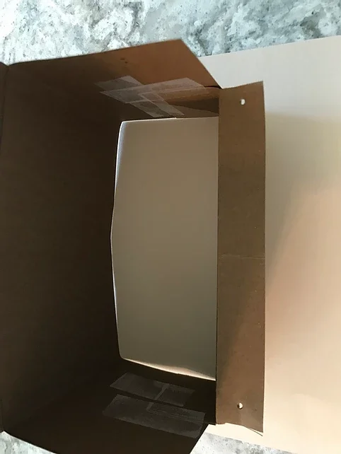 Use tape to secure the short piece of paper to the inside sides of the stall with folded top edge facing out. Tape flush with the front of the stall. Square up stall along the back crease.