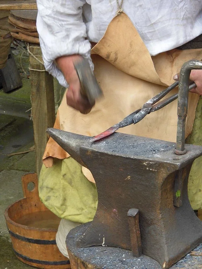 I shape metal tools and instruments from hot iron. I am a blacksmith.
