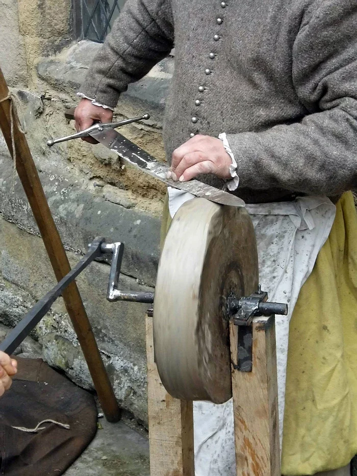 I sharpen knives and other metal tools on my whetstone, or grindstone. I am a knife grinder.