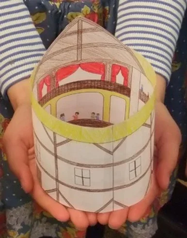 You will need: scissors, crayons, tape or glue and a printed copy of both the inside and outside of the theatre.