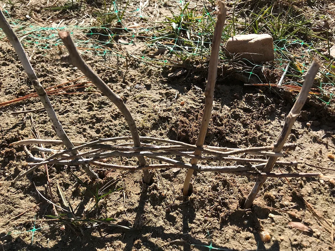 5. Once you have woven all of your twigs, you may be able to carefully lift your panel out of the ground to bring it inside. Otherwise, leave it in place in your yard and observe it over the next few days.